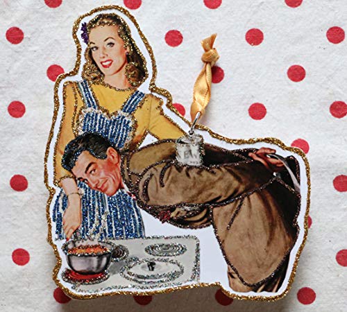 Amazon Com Retro Kitchen Decor Glittered Wooden Ornament 1950 S