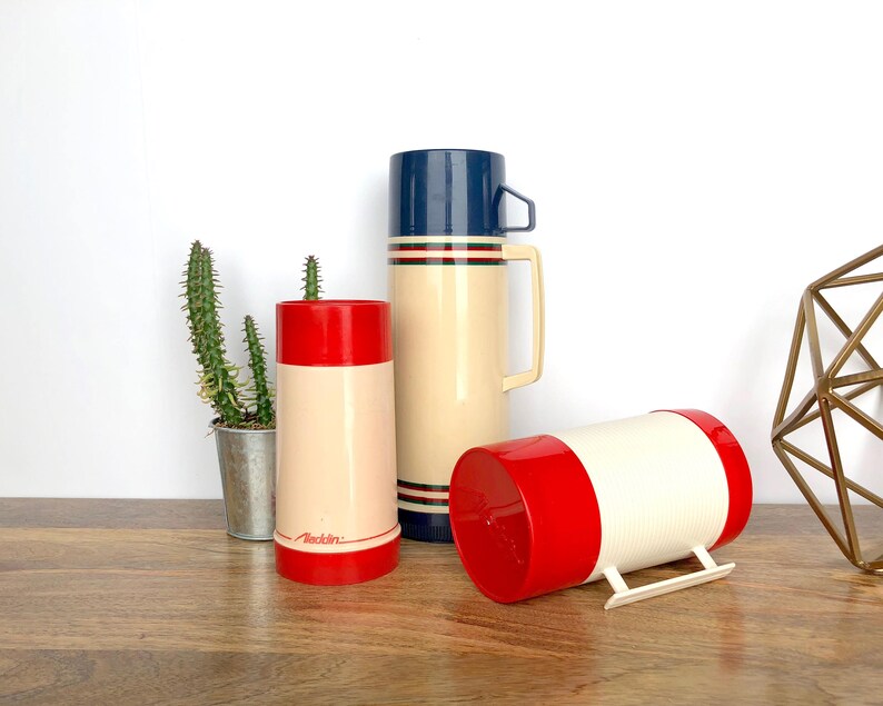 Vintage Thermoses Red And Blue Aladdin Plastic Thermoses Etsy