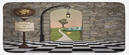 Amazon Com Ambesonne Alice In Wonderland Kitchen Mat Welcome