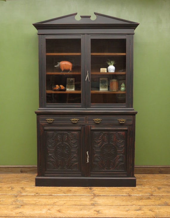 Black Painted Book Case Dresser Glazed Kitchen Cabinet Etsy