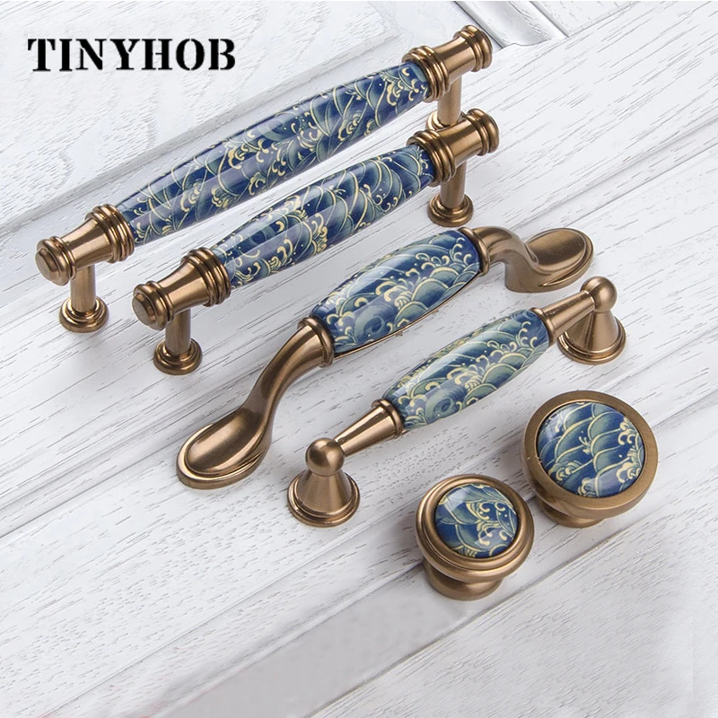 Blue Wave Hand Painted Ceramic Handles And Knobs Antique Kitchen