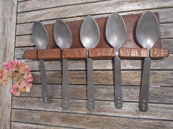 Antique Kitchen Utensils Tin Pewter Cutlery Hanging Wooden Etsy