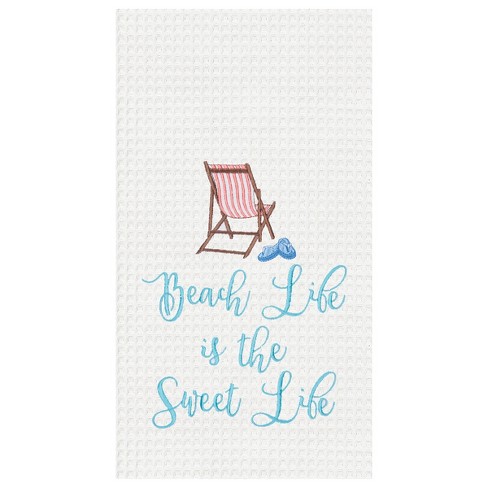 C F Home Beach Life Waffle Weave Embroidered Cotton Kitchen Towel