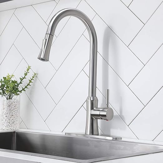 Casilvon Best Commercial Brushed Nickel Pull Down Kitchen Faucet