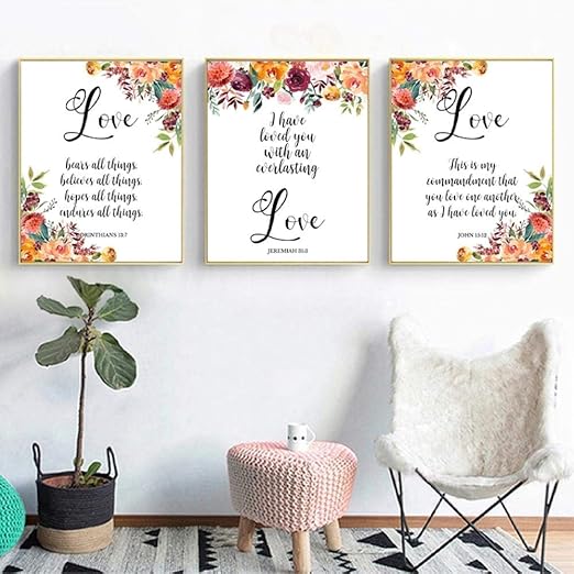 Home Decor Bible Verses Typography Prints Watercolor Flowers Love
