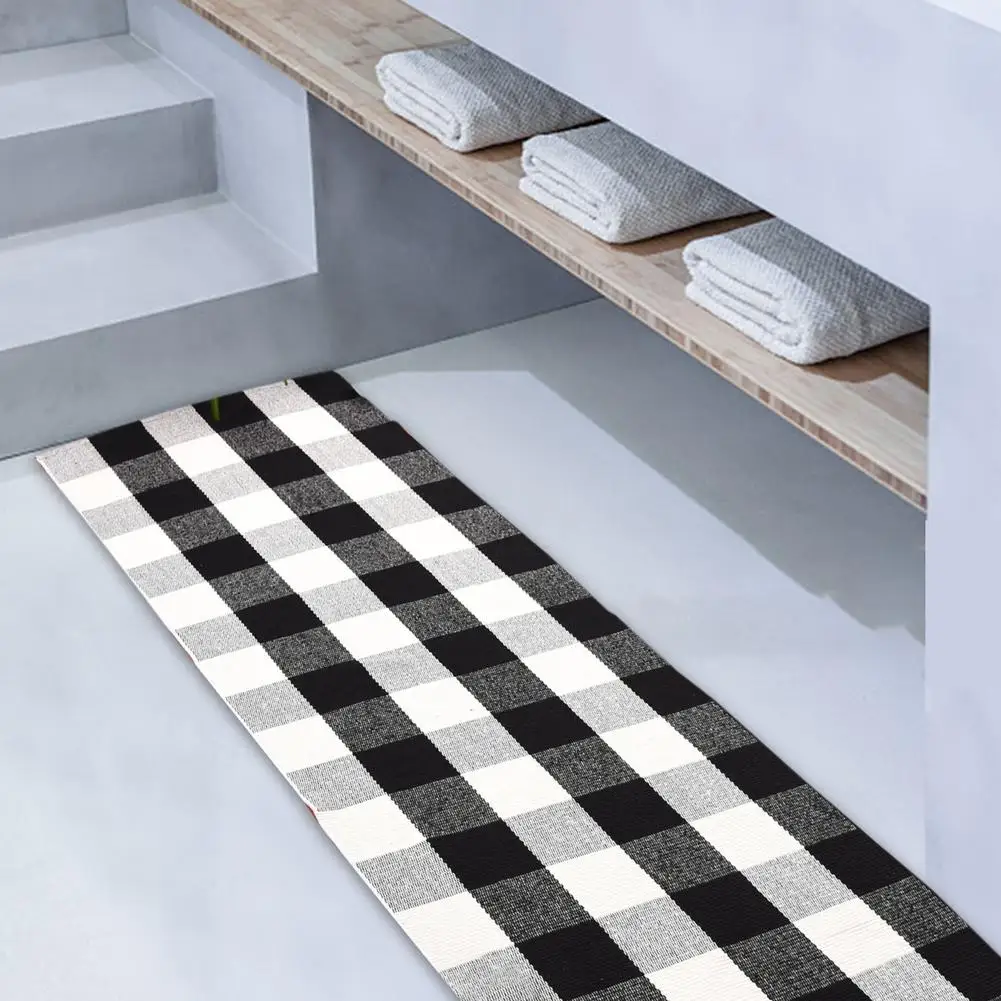 Cotton Buffalo Plaid Rugs Black White Checkered Rug Welcome Door