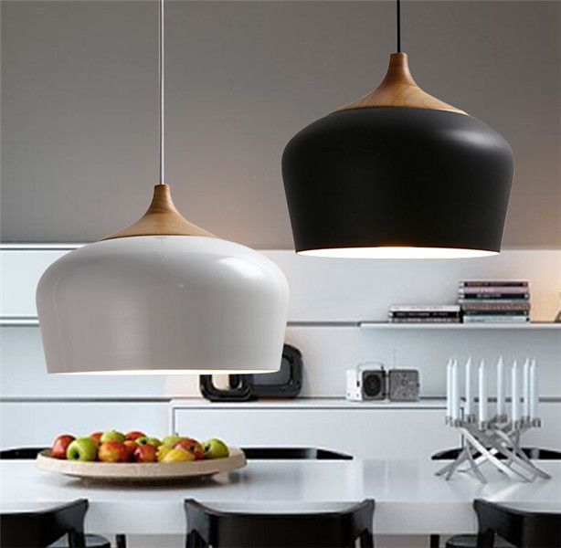 Modern Aluminum Oak Wood Pendant Light Lustres Black Pendant Lamp