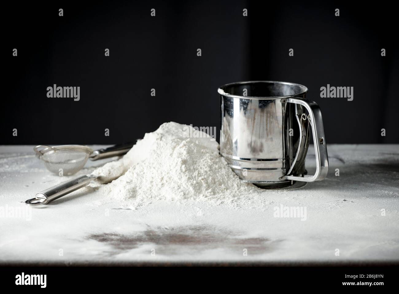 Salt In Bottle And Saltcellar On Black Stone Kitchen Table