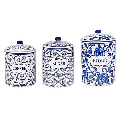 Blue White Patterned Ceramic 3 Pc Canister Set Amazon In Home
