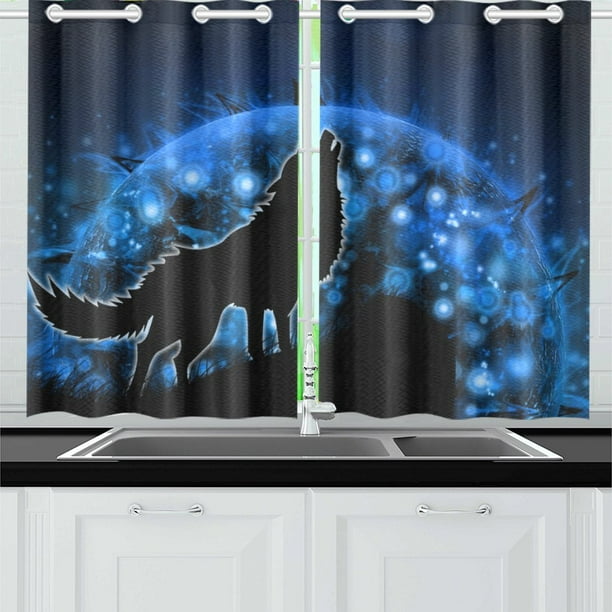 Mkhert Moon Blue Wolf Window Curtain Kitchen Curtains Window