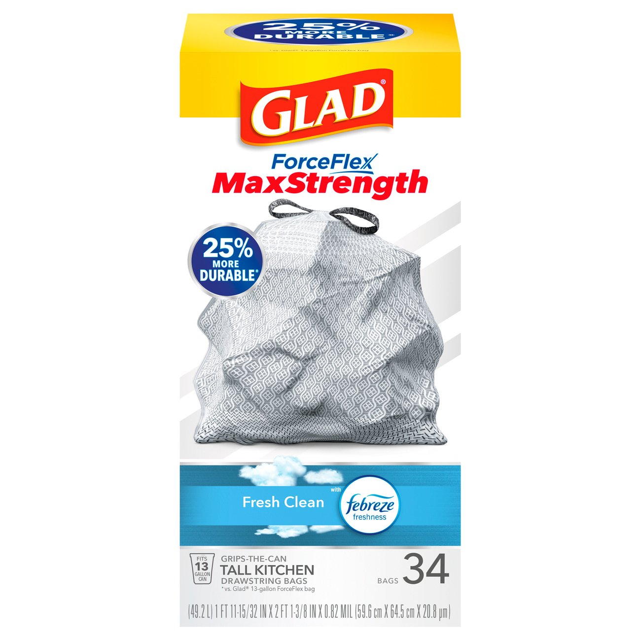 Glad Forceflex Plus Fresh Clean Drawstring Tall Kitchen 13 Gallon