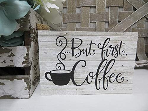 Desconocido Cartel De Madera Con Texto En Ingles But First Coffee