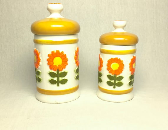 Floral Ceramic Kitchen Canister Set Small Orange Daisy Dry Etsy