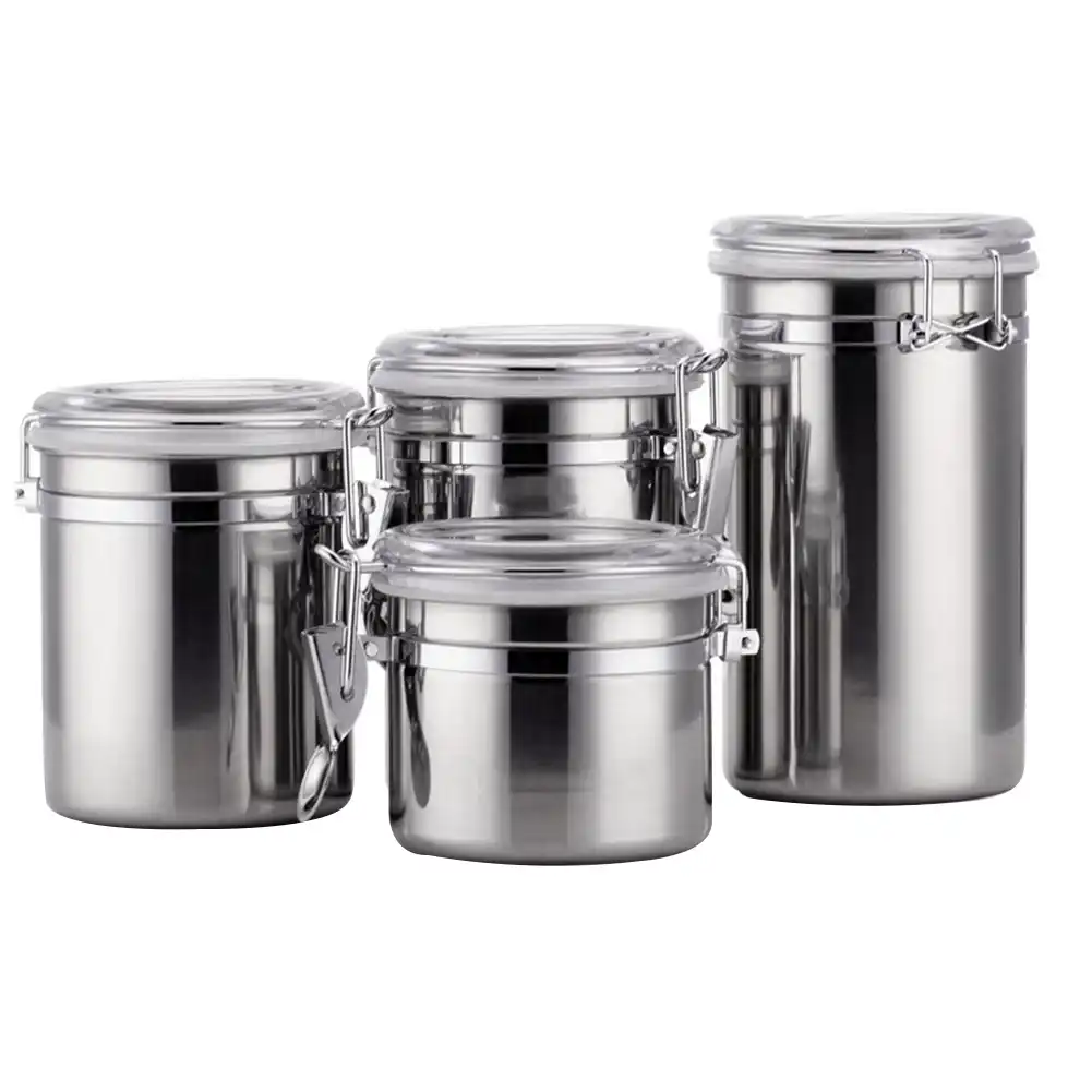 4pcs Set Storage Canisters Sealed Jar Tea Stainless Steel With