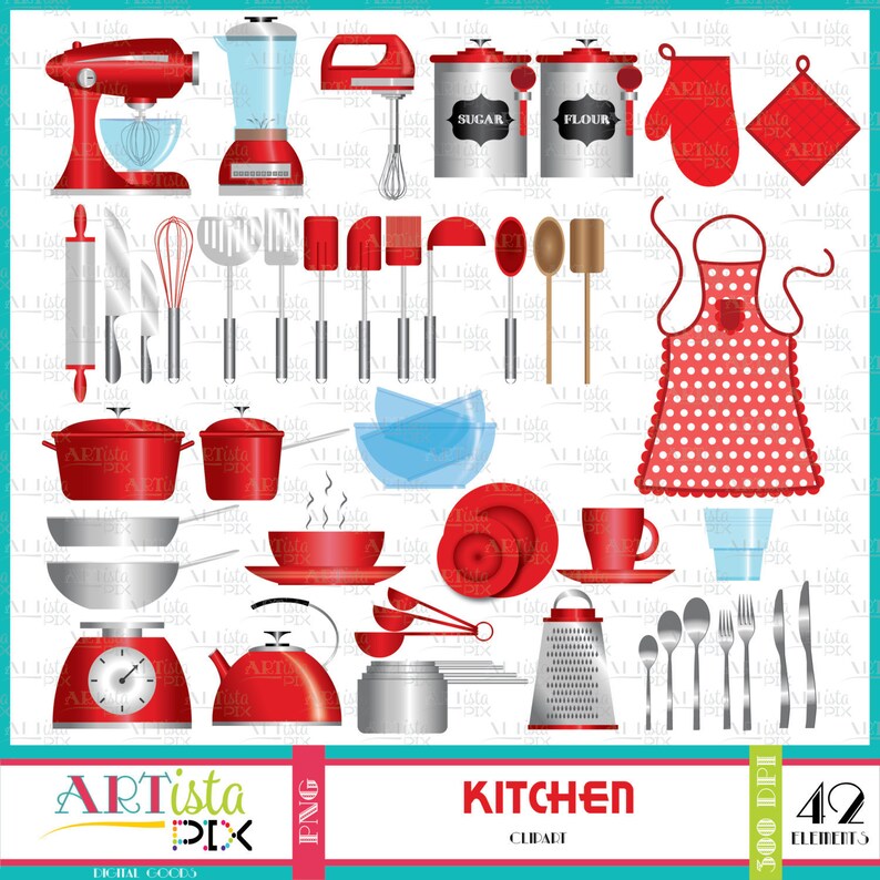 Kitchen Clipart Cooking Clipart Kitchen Images Red Kitchen Etsy
