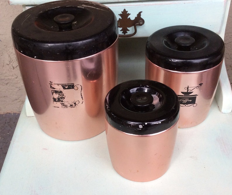 Vintage West Bend Pink Copper Tone Aluminum Kitchen Canisters Etsy