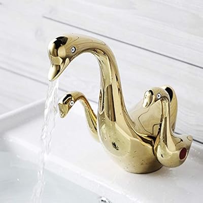 Kitchen Sink Taps Basin Faucets Gold Swan Design Hot Cold Brass