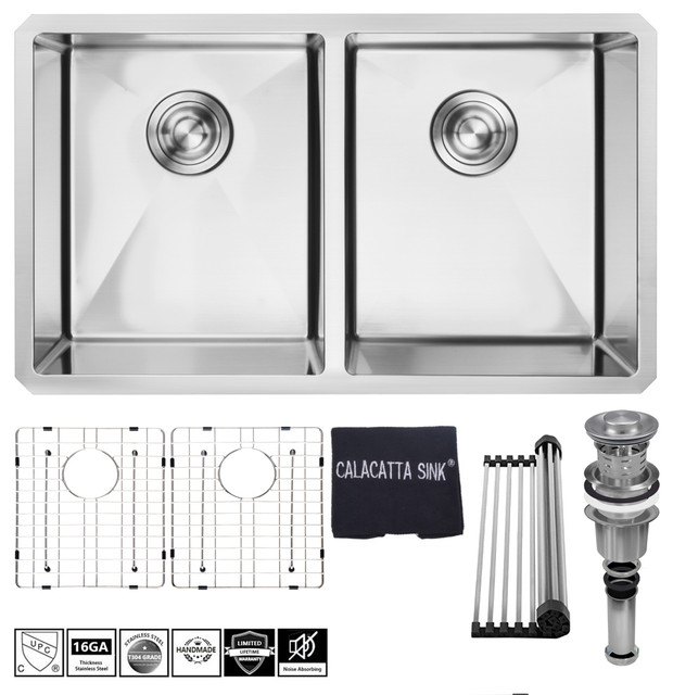 32 X19 X10 Undermount Double Bowl Kitchen Sink 16 Gauge Set