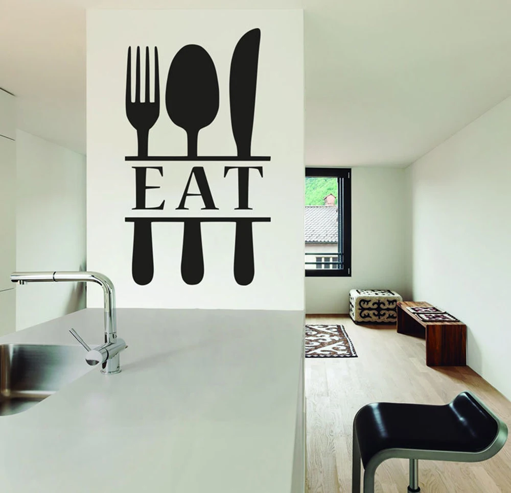 Kitchen Decor Wall Decals Spoon Fork Vinyl Wall Sticker Eat Sign