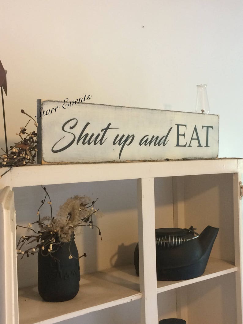 Funny Kitchen Signs Shut Up And Eat Sign Kitchen Decor Etsy