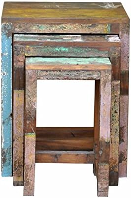 Amazon Com Antique Rustic Stool Set Of 3 Farmhouse Bar Height Pub