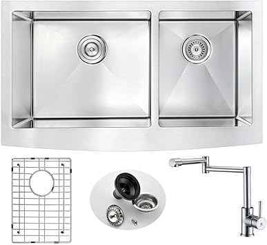 33 Stainless Steel Farmhouse Kitchen Sink With Deck Mounted Pot