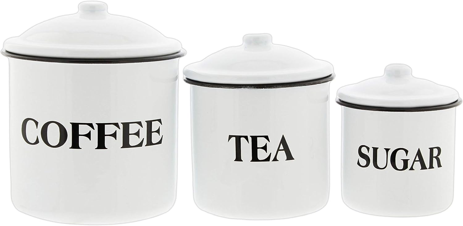 Set 3 White Enamel Canister Set Farmhouse Kitchen Decor Flour