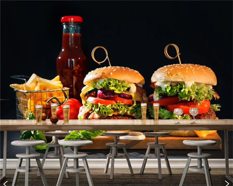 Papel De Pared Fast Food Hamburger Vegetables Food 3d Wallpaper