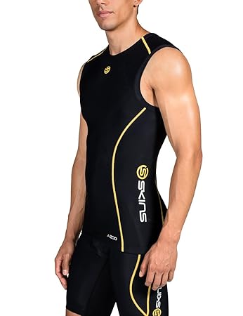 Skins A200 Mens Top Sleeveless Black Yellow Xs B60052003xs