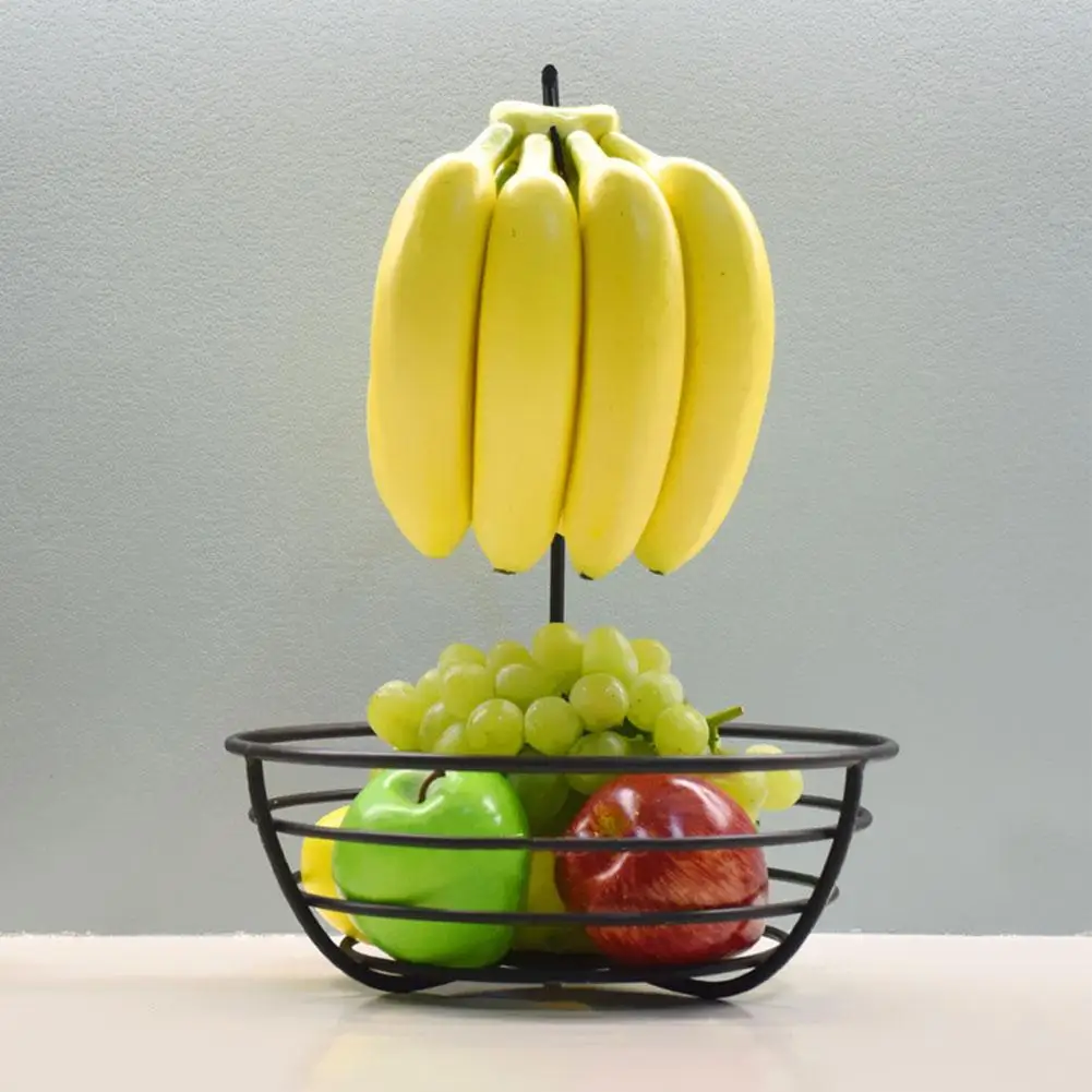Metal Fruit Basket Vegetable Snack Storage Bowl With Banana Hanger
