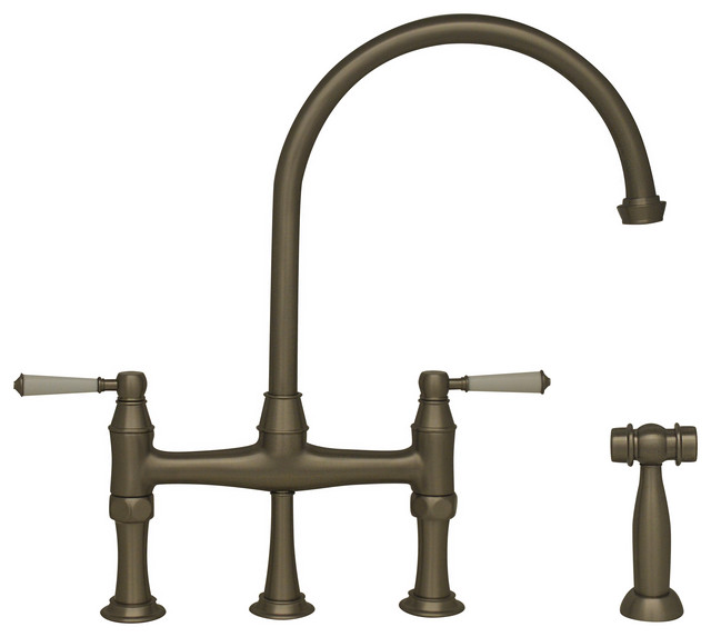 This gooseneck faucet embodies elaborate traditional designs. 8 inch center if using base. Patented kitchen faucet with pull down sprayer and soap dispenser single handle stainless steel brushed nickel high arc pull out kitchen.