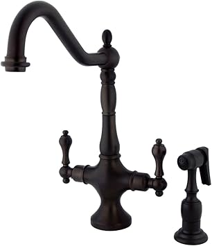 Kingston Brass Kb1793blbs Heritage Widespread Kitchen Faucet With
