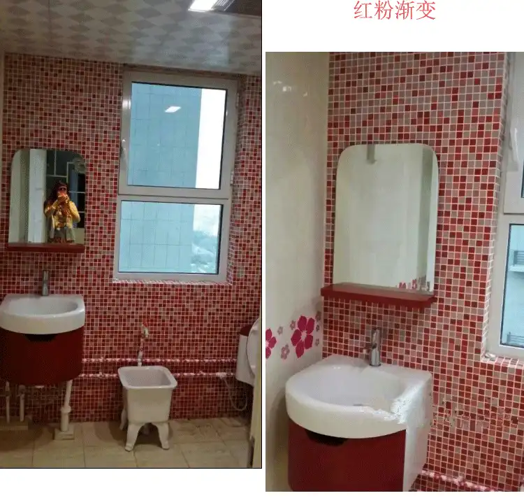 Customized Gradient Red Pink White Glass Mosaic Tile Swimming Pool