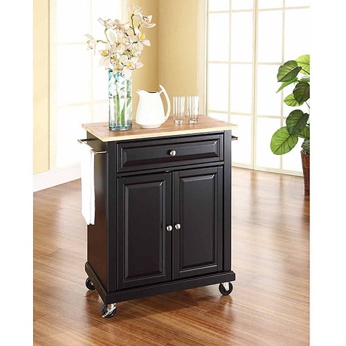 Crosley Furniture Natural Wood Top Portable Kitchen Cart Walmart