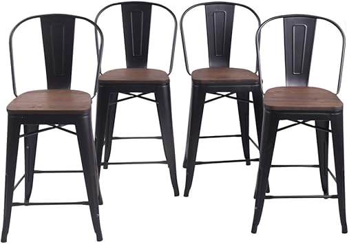 Amazon Com 26 Inch High Back Industrial Metal Bar Stool Kitchen