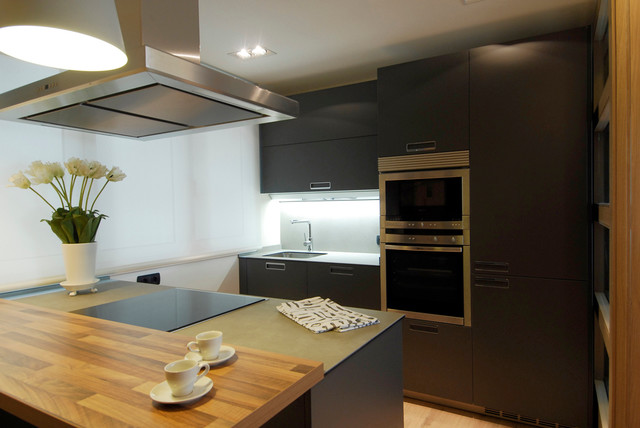 Decoracion De Cocina Con Muebles En Negro Y Suelo Laminado De