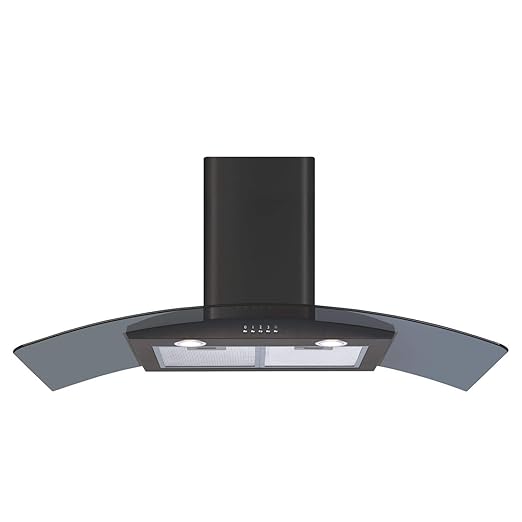 Cda Ecp112bl 110cm Black Curved Glass Chimney Cooker Hood Kitchen