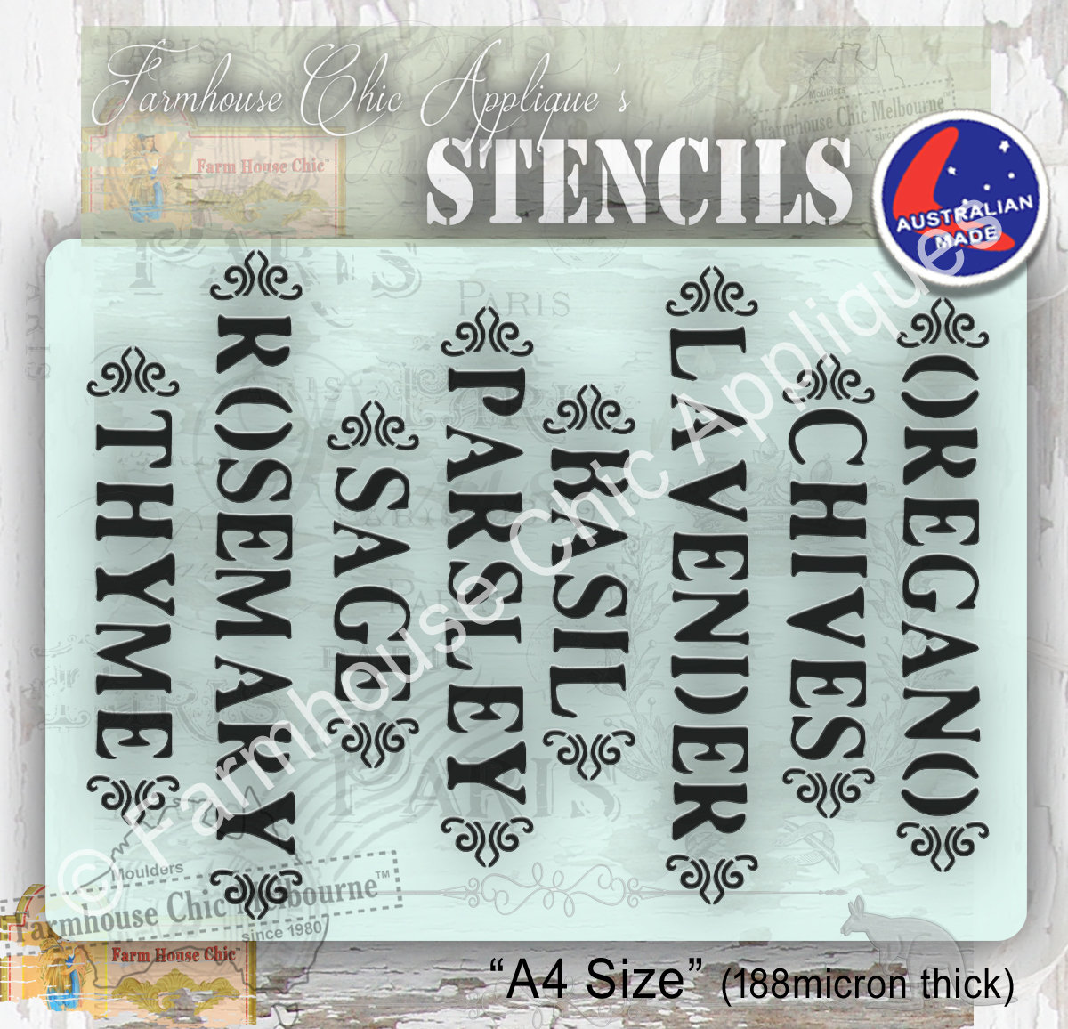 Herb Names Sheet Mylar Furniture Stencil French Style Vintage