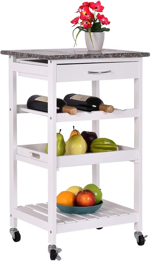 Small Kitchen Island Carts On Wheels Storage Basket Wine Rack