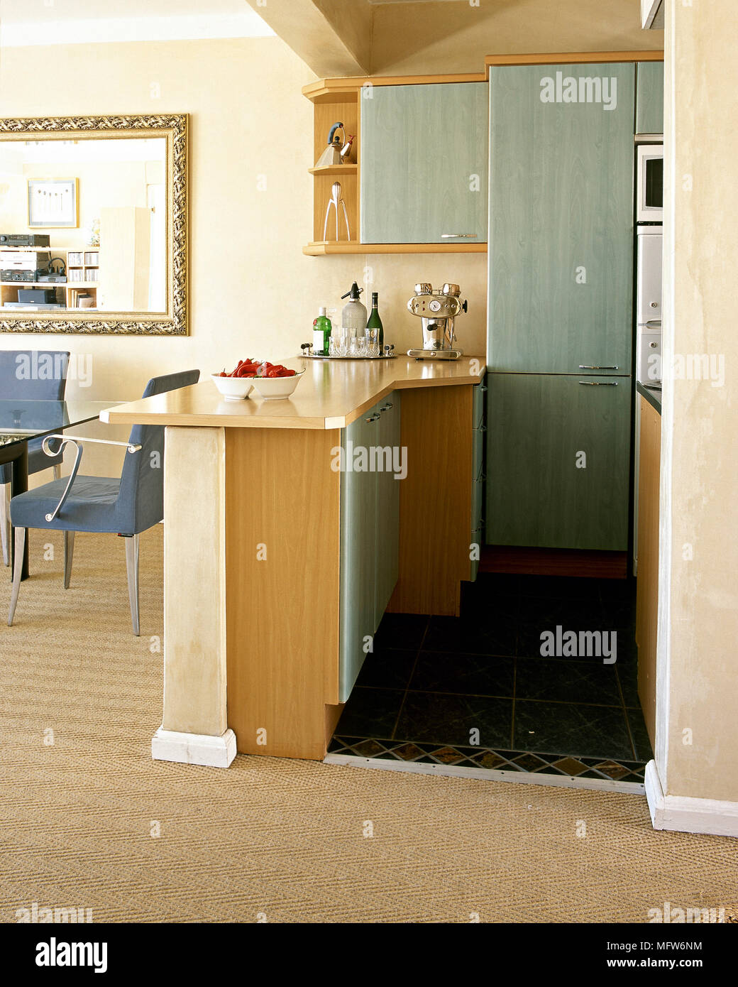 Detail Of Kitchen And Dining Area With Peninsula Cabinets And
