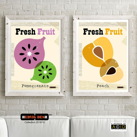 Kitchen Print Set Of Two Kitchen Wall Art Fruit Prints Etsy