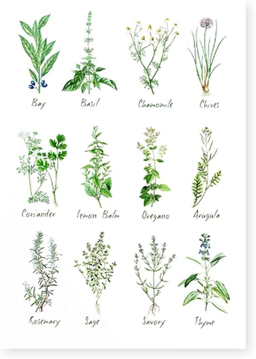 Ceramic Kitchen Tiles W Botanical Herb Prints Of Culinary Herbs