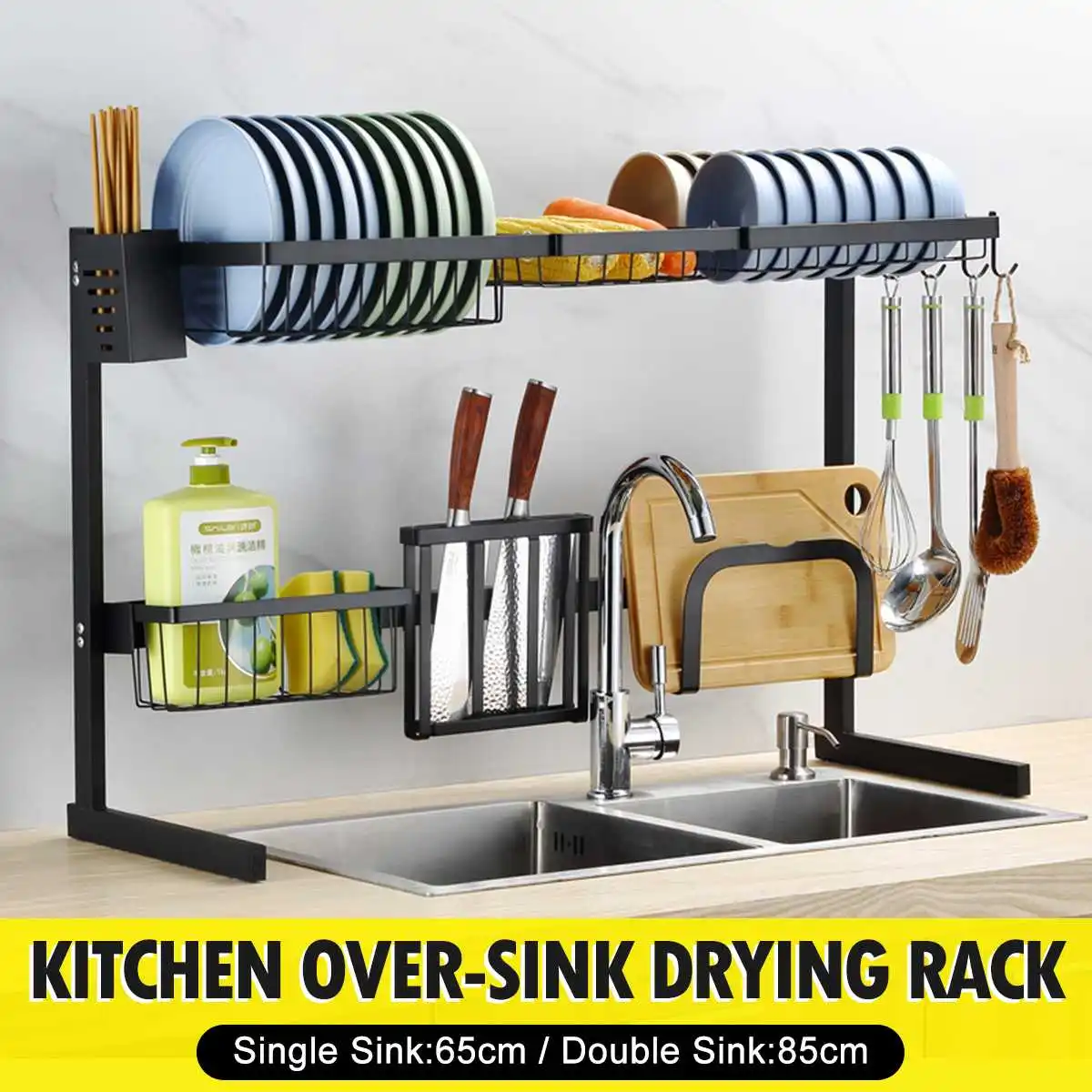Kitchen Shelf Organizer Dish Drying Rack Over Sink Utensils Holder