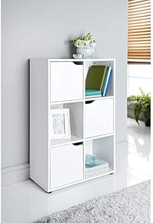 Lokken 6 Cubes 3 Door White Wooden Finish Storage Bookcase Display