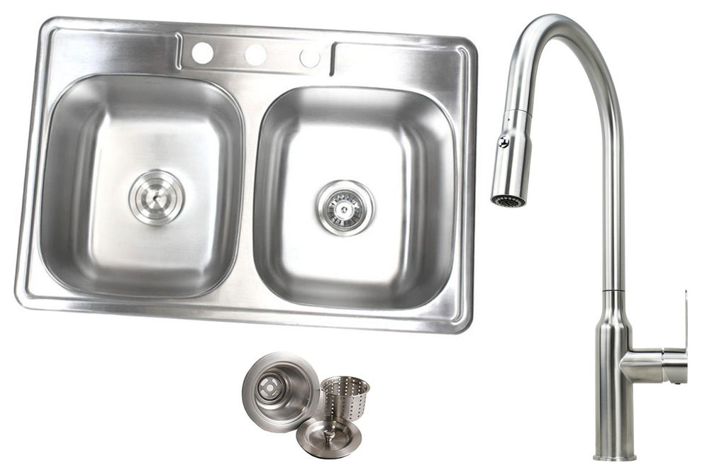 Ancona Single Handle Faucet Combo 33 L X 22 W Double Basin Dual