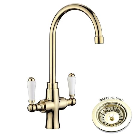 Traditional Kitchen Sink Basin Mixer Tap Gold Including Basket
