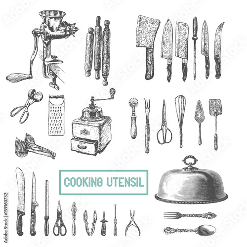 Hand Drawn Illustration Cooking Tools Dishes Food Creative Ink Art