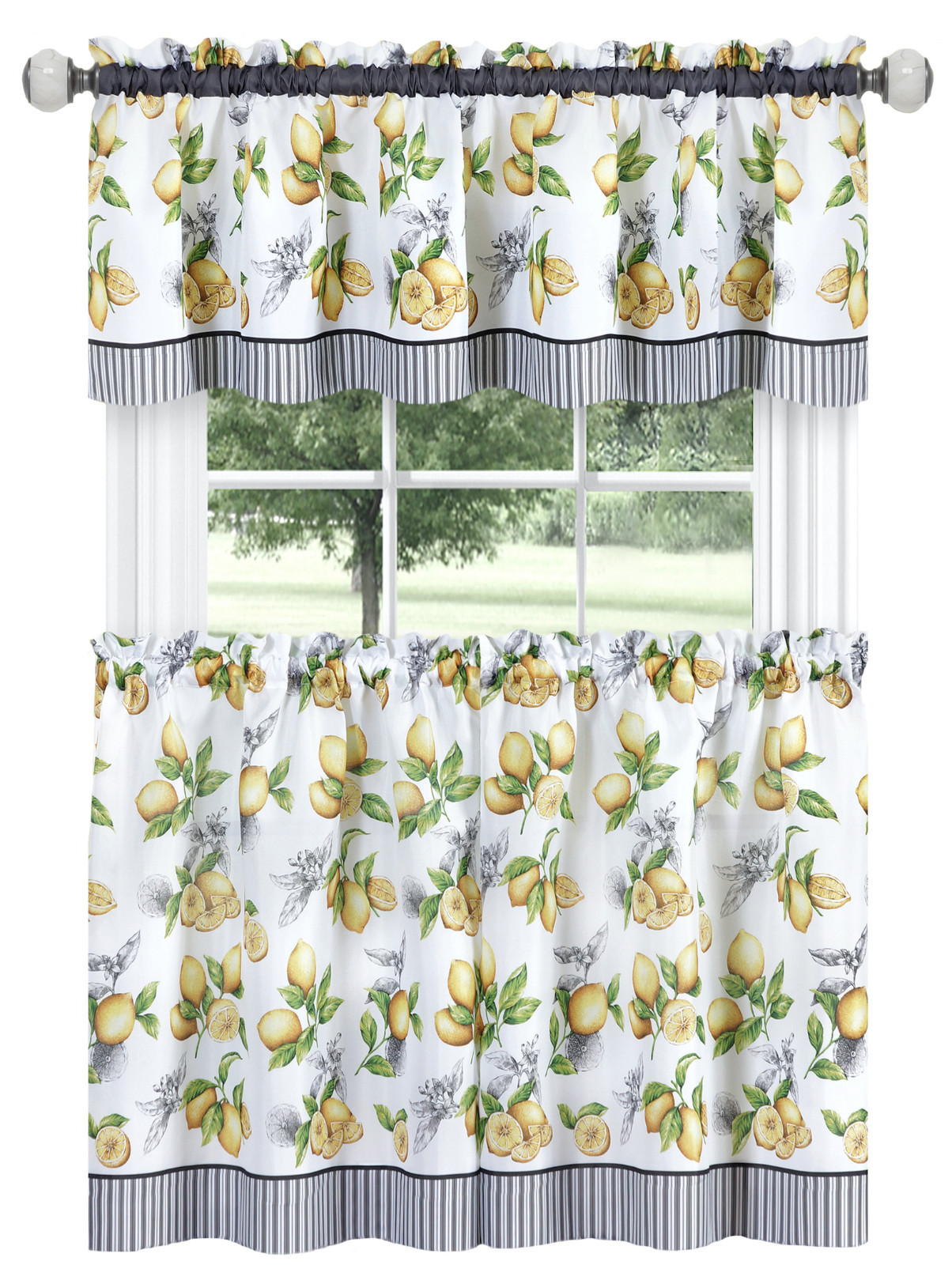 Lemons Complete Cafe Style Kitchen Curtain Tier Valance Set