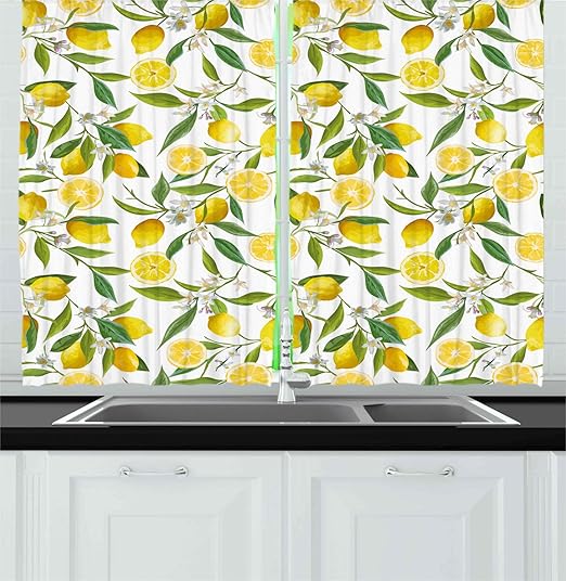 Amazon Com Ambesonne Nature Kitchen Curtains Exotic Lemon Tree