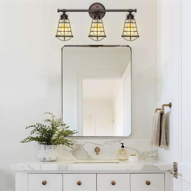 3 Light Bathroom Vanity Light Fixture Industrial Wire Cage Wall